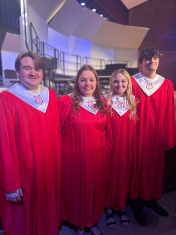 On January 11-12, 4 Sidney Choir students attended Doane University Vocal Festival Honor Choir in Crete, Nebraska. The Festival Choir was comprised of singers from 41 different schools across Nebraska and Iowa. Students that attended the festival from L-R: Kaiden Stockstell, McKenzie Thatcher, Gabi Jacobs, and William Hobbie. Congratulations Students!