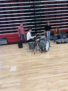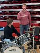 As part of preparation for High School Jazz Band’s Celebration performance, Christian Harris, Sidney graduate, and past UNL drumline member, joins HS percussionists to teach them some ideas on the trapset. He’s been working with HS percussionists for the last two weeks on drumline as well.